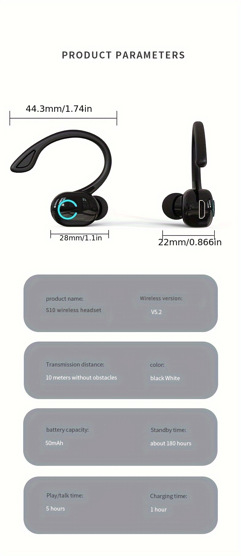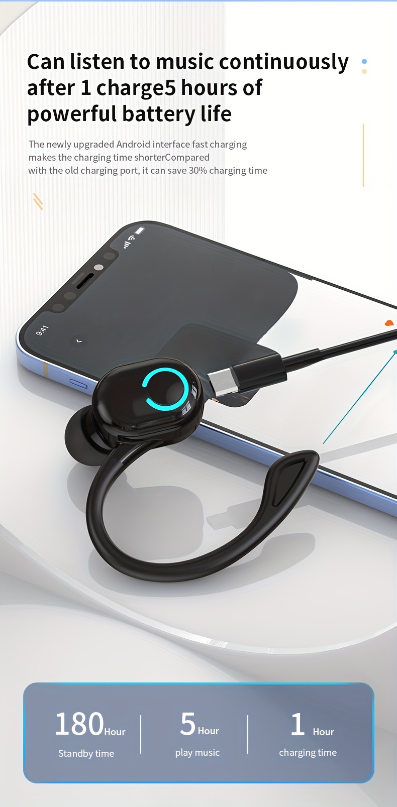 HD Stereo Wireless Earphone - Secure Fit for Sports & Running - Single-Ear, Hands-Free Talking - Lightweight & Seamless Bluetooth Connection