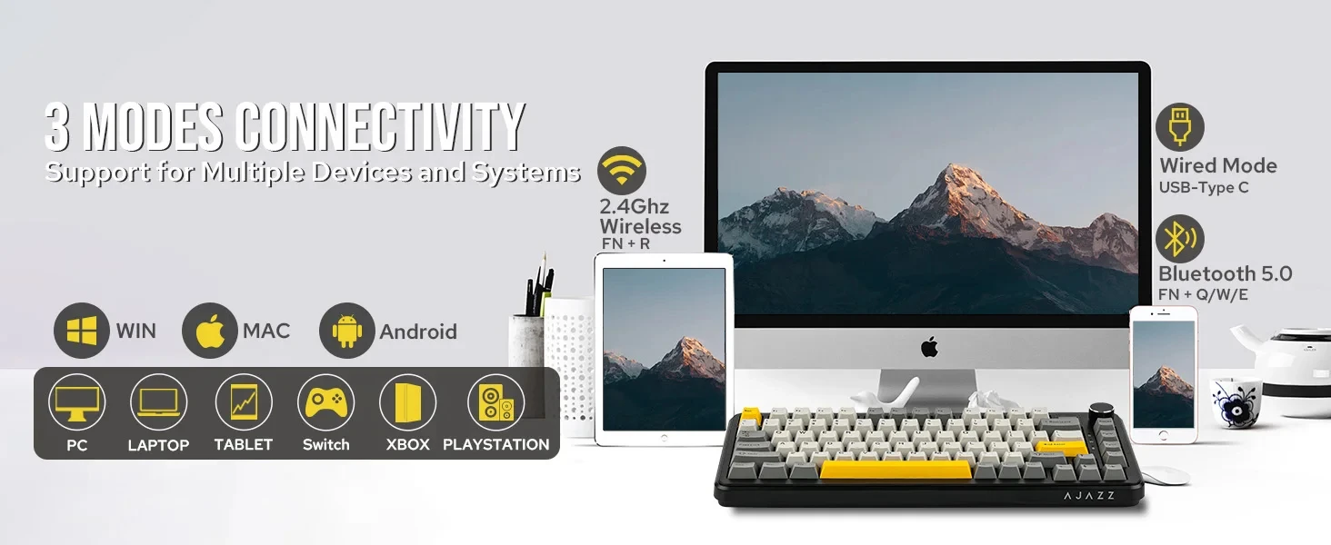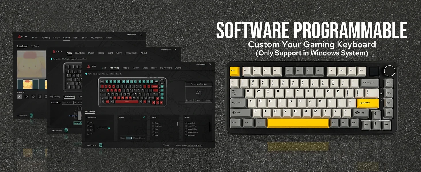 【Upgraded with Magnetic Switch】 Following the success of the AJAZZ AK820 Pro, AJAZZ introduces the upgraded AK820 Max HE, featuring factory-lubed magnetic switches. Unlike traditional mechanical switches, these magnetic switches offer rapid trigger capabilities, enabling ultra-fast response times. Users can activate keys immediately after pressing them once, without waiting for a full reset. The keyboard supports various key change modes, including DKS (Dynamic Key Switching), MT (Magnetic Tactile), and TGL (Trigger-Lock), enhancing its versatility.