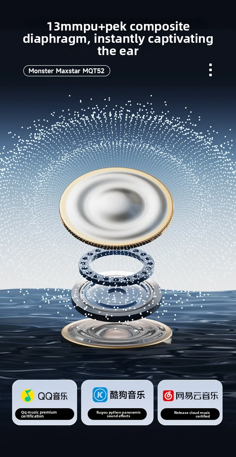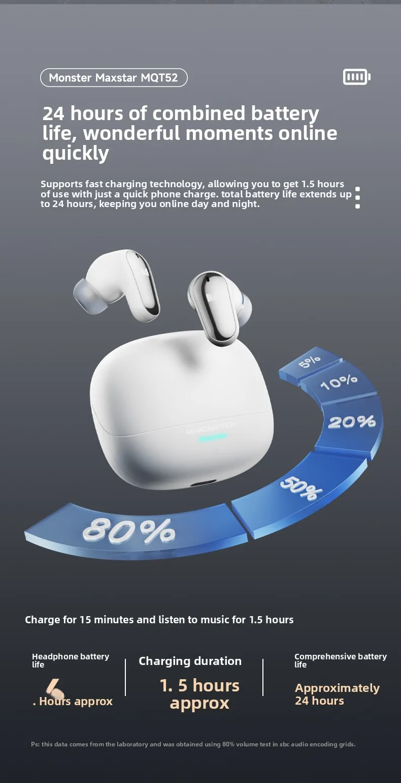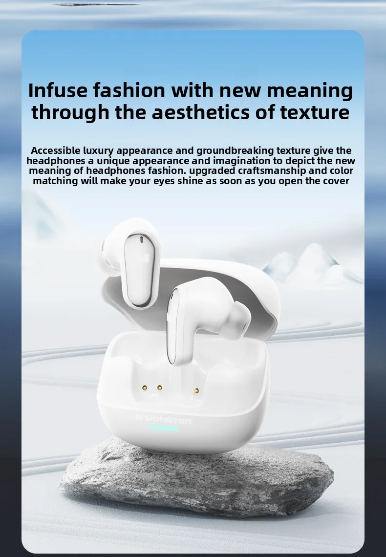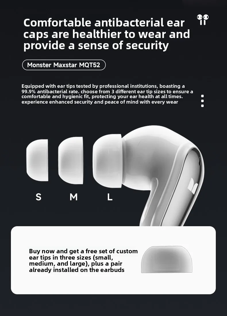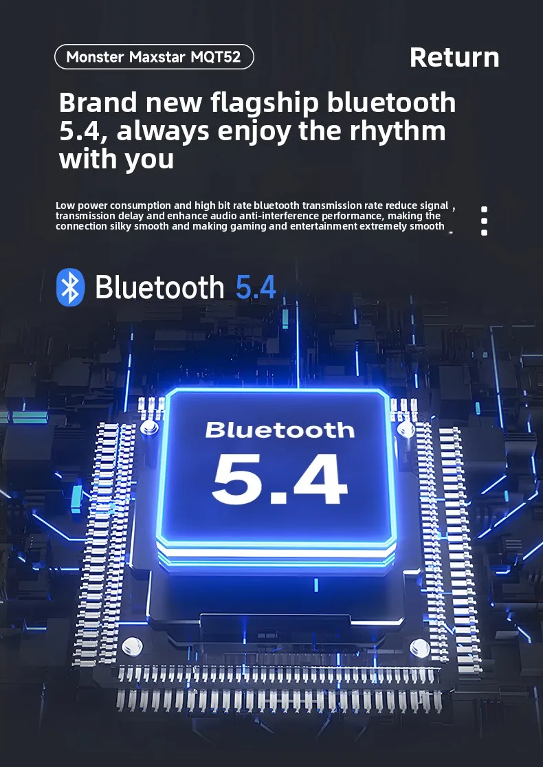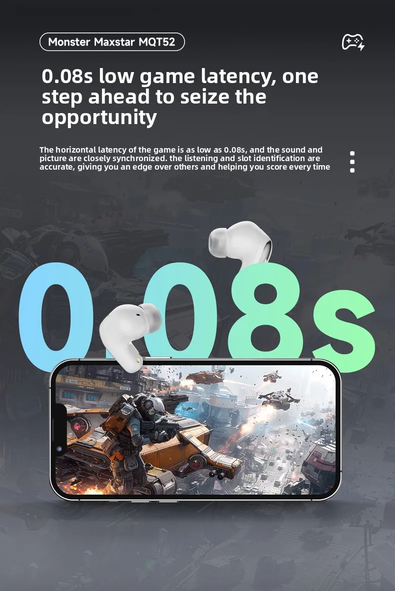 New Monster MQT52 TWS Wireless Bluetooth 5.4 Headset HIFI Stereo Music Gaming Earphones Talking Noise Canceling Earbuds