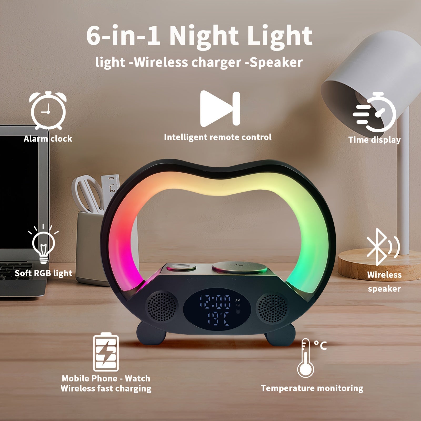 Wireless Charging Night Light Speaker: Birthday Gift for Bedroom, Bluetooth Speaker with LED Light