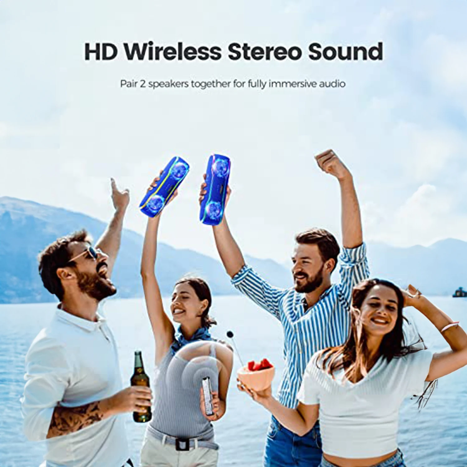 - IPX7 Waterproof and Rugged Design: IPX7 advanced waterproof, effective against rain and splashes. Using high-performance materials and preventing drop design, it is more durable than similar products. Great for house parties or pool parties, beach parties, BBQs, biking, hiking, camping and more